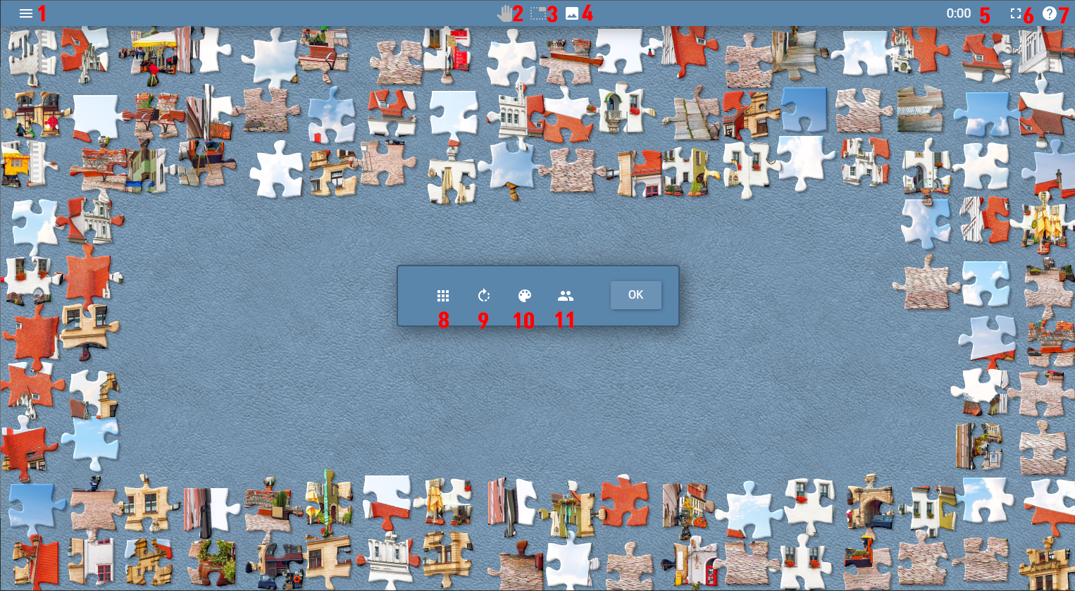 | 3 | 누르면 퍼즐 끝 테두리조각만 보여줍니다. 다시 누르면 전체 퍼즐 조각을 다 보여줍니다. |