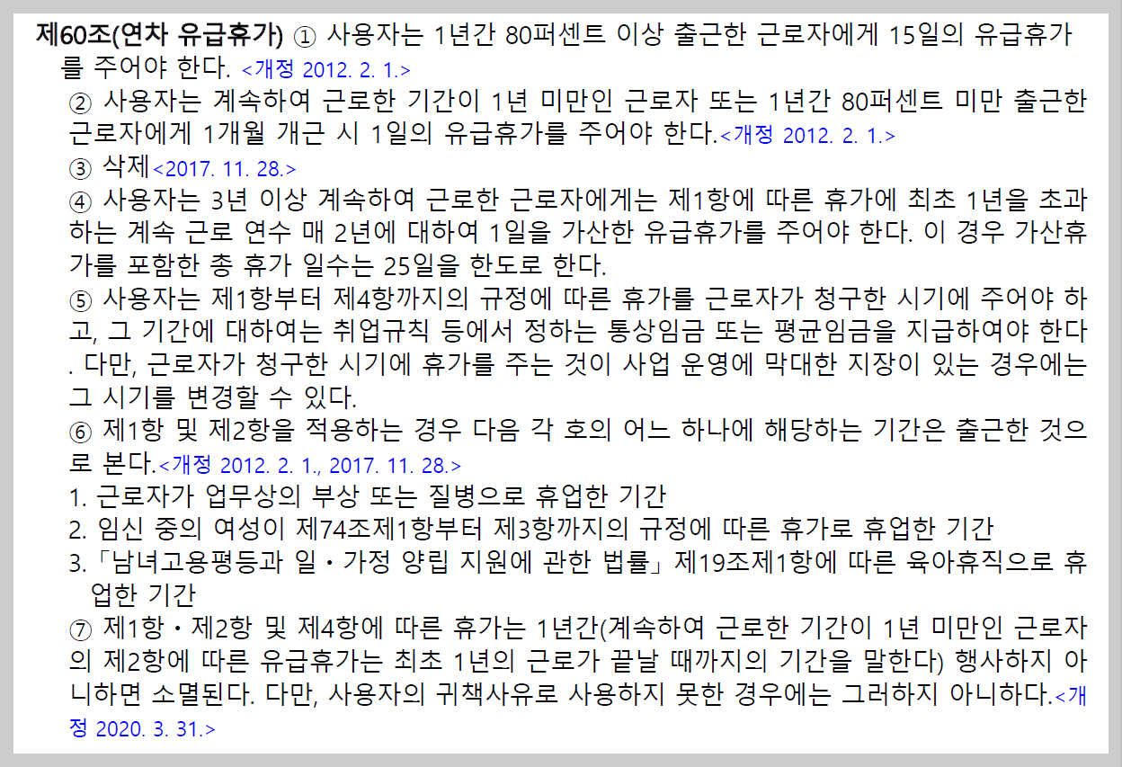 근로기준법 제60조(연차 유급휴가)